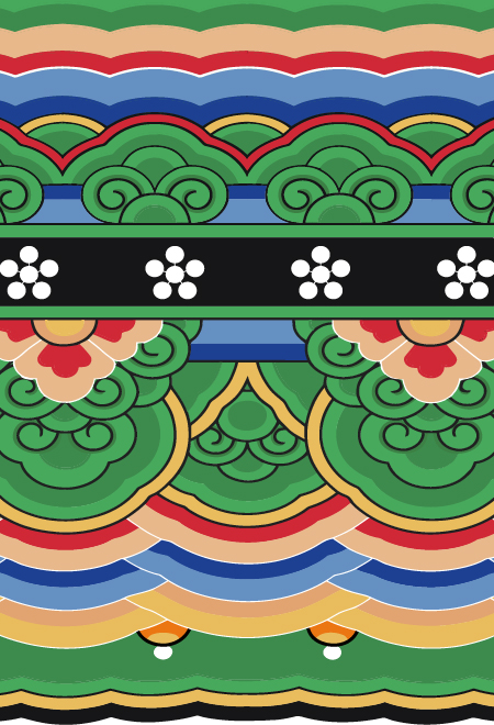 전통 건축의 아름다움을 현대적으로 재해석한 단청 일러스트입니다. 안정된 좌우 대칭과 화려한 색감을 유지하며, 전통 문양의 디테일을 섬세하게 표현해 문화적 감성과 미적 가치가 조화를 이루는 작업입니다.